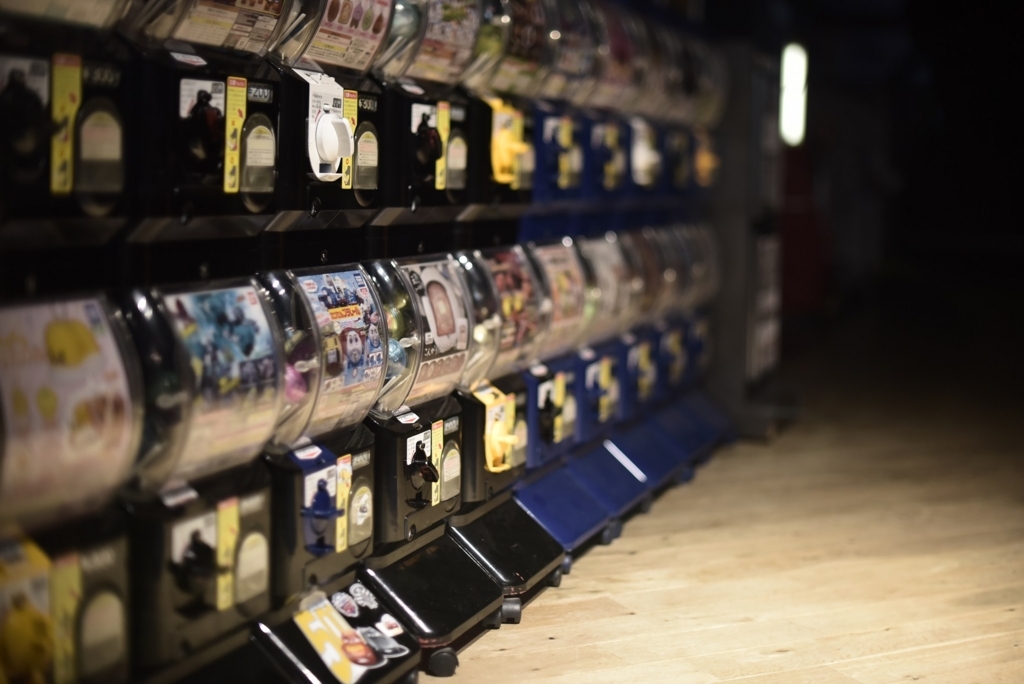 2018-06-01 カプセルトイ カメラ 写真 生活 町 子供の頃親に頼み込んだ 彼らは町のスーパーやゲームセンターにいた 願いを乗せた小さな手が回していたレバーも 夜にはさび付いて見えた 大きかった半透明なカプセルが いつのまにか小さくなっていた お題「行きたい場所」 お題「これって私だけ?」 お題「もう一度行きたい場所」 お題「ちょっとした贅沢」 お題「カメラ」 お題「思い出の一枚」 お題「愛用しているもの」 Nikon D750 SIGMA 35mm F1.4 Art TAMRON 90mm F2.8 SIGMA 12-24 F4.5-5.6 NIKON EM 50mm F1.4 FUJIFILM X-A1 35mm F1.4